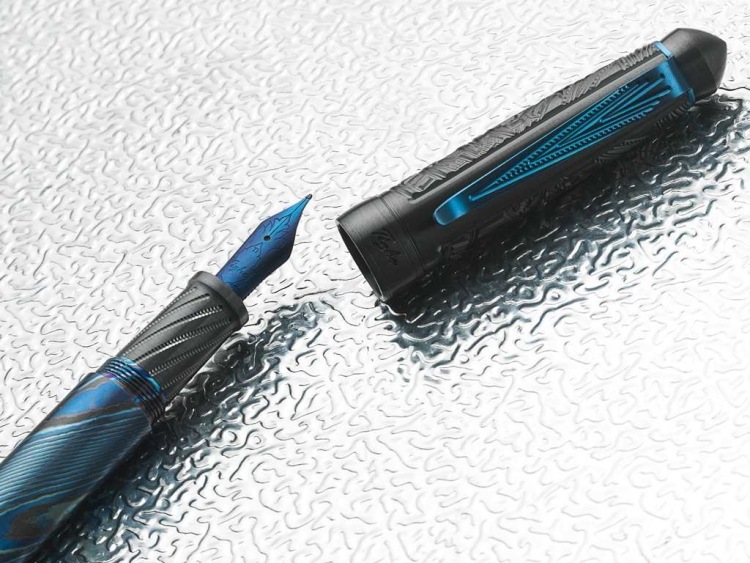 Chiếc bút này sử dụng chất liệu thép mokume - gane, được biết đến với tên gọi thép vân gỗ, chất liệu được tôn sùng trong văn hóa Nhật Bản có kỹ thuật chế tác phức tạp. Do độ phức tạp và môi trường làm việc cực kỳ khắc nghiệt nên công nghệ sản xuất loại thép này gần như đã thất truyền.