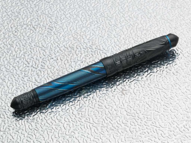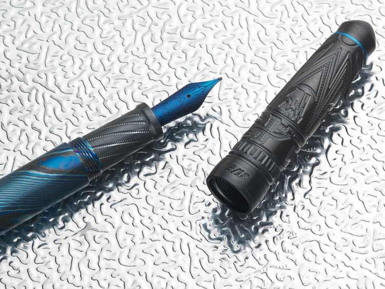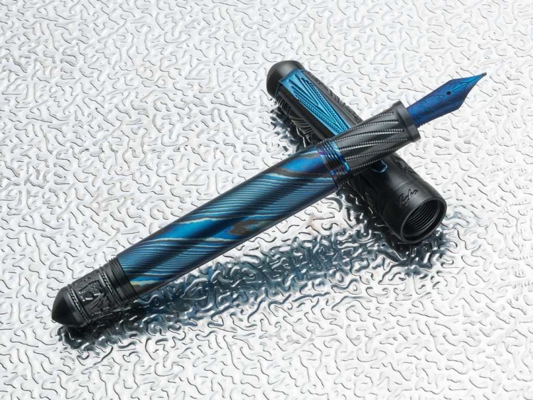 Đây là mẫu bút đầu tiên của Grayson Tighe sử dụng ngòi bút Titanium mang tới cảm giác nhẹ nhàng trên mỗi nét viết, và được xử lý với kỹ thuật nung nhiệt tạo màu xanh giống trên các model đồng hồ Thụy Sỹ hàng đầu. Thân bút được tạo màu bằng bí quyết nung qua lửa để có được lớp họa tiết xanh rất đặc trưng.