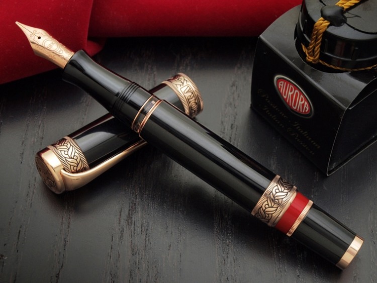 Bộ sưu tập Bút máy cao cấp Aurora Limited Edition Dante Inferno bao gồm các mô hình cây bút chỉ, thực hiện trong màu sắc mà nhớ lại những địa ngục: một cơ thể trong sơn mài màu đen với kết thúc ở hoa hồng vàng, với sự bổ sung của một màu đỏ địa ngục trên chiếc nhẫn.