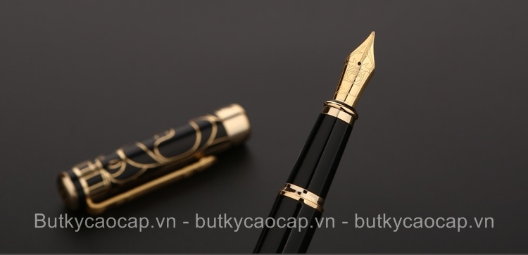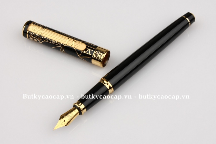 Bút máy cao cấp Picasso PS-902FG được làm từ kim loại cao cấp, mạ màu đen toàn thân, cài bút mạ màu vàng sang trọng. Bút cao cấp Picasso PS-902FG sử dụng ngòi viết máy với cỡ ngòi khoảng 0.5mm cùng 2 màu mực xanh và mực đen. Bút máy Picasso sử dụng kiểu xilanh bơm mực hoặc ống mực cắm trực tiếp khi sử dụng.