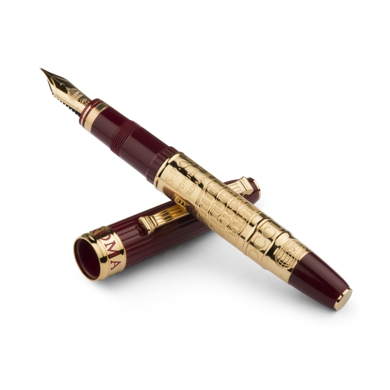 Bút máy Omas Roma Limited Edition Bordeaux Cotton Resin and Brass được thiết kế dựa trên niềm cảm hứng về thành phố Rome kì diệu. Rome không chỉ là thành phố thủ đô của Ý mà nó còn được coi là cái nôi của nền văn minh phương Tây và của đế chế La Mã, lớn nhất về mặt quản lý và chất lượng của lãnh thổ với một xã hội mạnh mẽ tổ chức chính trị, đã đặt nền móng cho nền văn hóa hiện đại.